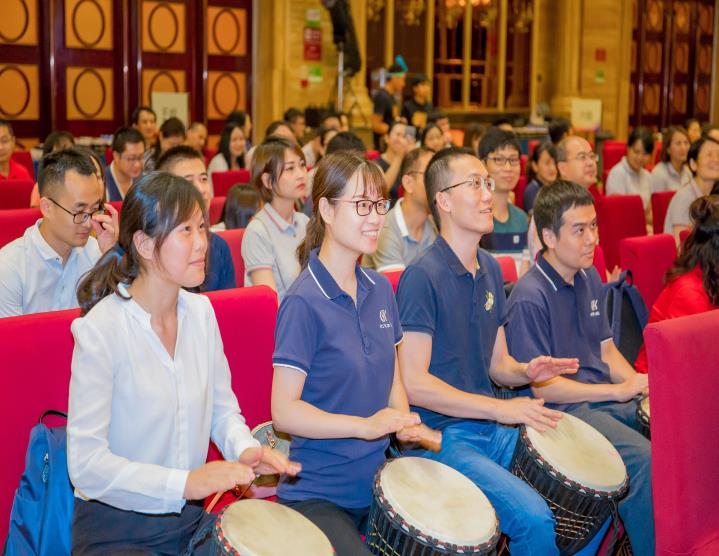 初始,在無言的敲打演奏中,每位北科人皆特立獨(dú)行,樂章零落散碎,主持人便提出北科多年來在細(xì)胞領(lǐng)域堅(jiān)持的三個(gè)關(guān)鍵詞“專心、專業(yè)、專注”以勵(lì)大家,無論何時(shí)、何地、何事,身為北科一份子,北科人都應(yīng)上下一心、和而不同,在共同的目標(biāo)面前,所有人放下自己的身份、地位,只為實(shí)現(xiàn)在北科生物十三周年慶的今日,為它送上一曲誠(chéng)摯的生日祝福。最后,在主持人耐心的引領(lǐng)下,在場(chǎng)的300余位北科人統(tǒng)一節(jié)奏、鼓點(diǎn),為北科生物13周年慶典送上一曲慷慨激昂的音樂祝福!